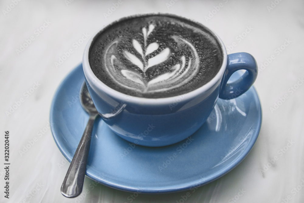 Charcoal Latte Coffee Cup Activated Charcoal Black Powder Mixed In Cappuccino Milk Froth For Healthy Detox Hangover Cure American Trend Stock Photo Adobe Stock
